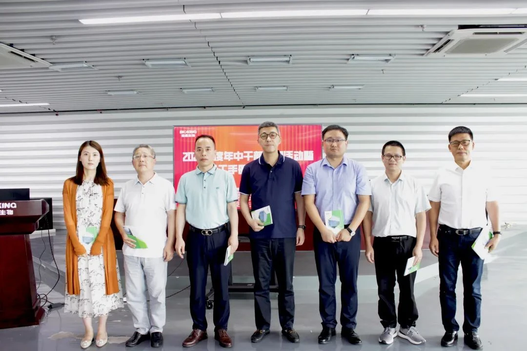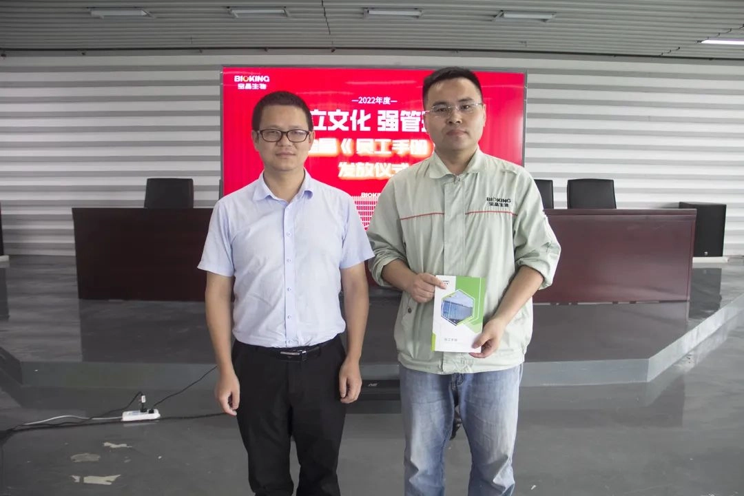 工会主席雷振国为中层干部代表颁发员工手册(合影)