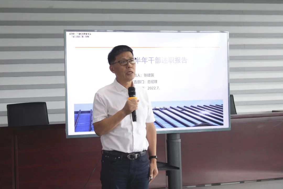 最后,张建国总经理进行了总结发言。他指出:感谢这半年来各位中层以上干部在工作中的辛勤付出,同时也指出了在述职过程中存在的总结经验不够、分析问题不透彻、对下一步工作谋划缺少精准定位、建设性意见少等问题。下半年的工作挑战重重,要注意多梳理流程,多思考,多借鉴,多学习。