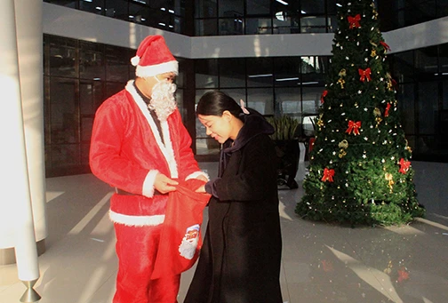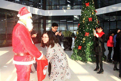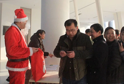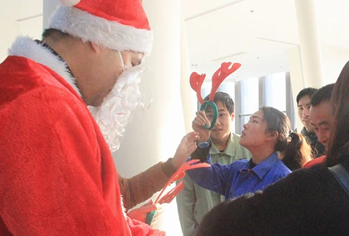 12月25日圣诞节一大早,意昂体育的一楼大厅就人头攒动,大家都在兴奋的排队,等待圣诞老人的礼品,八点一刻准时开始,20分钟的功夫就把100多份礼品领完了,大家拿着巧克力、曲奇饼等小礼品,开开心心地迎接一天的工作。