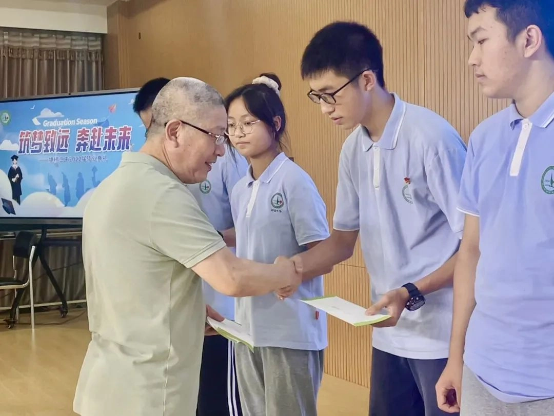 典礼现场,孙伟荣理事长为即将跨入高中的30名优秀学子颁发了助学奖励,鼓励二中学子继续拼搏。