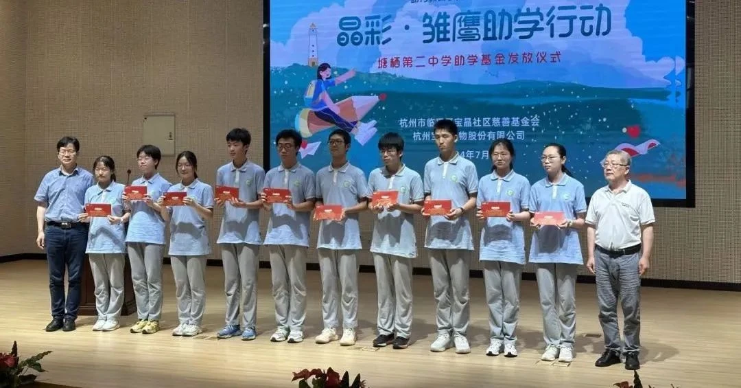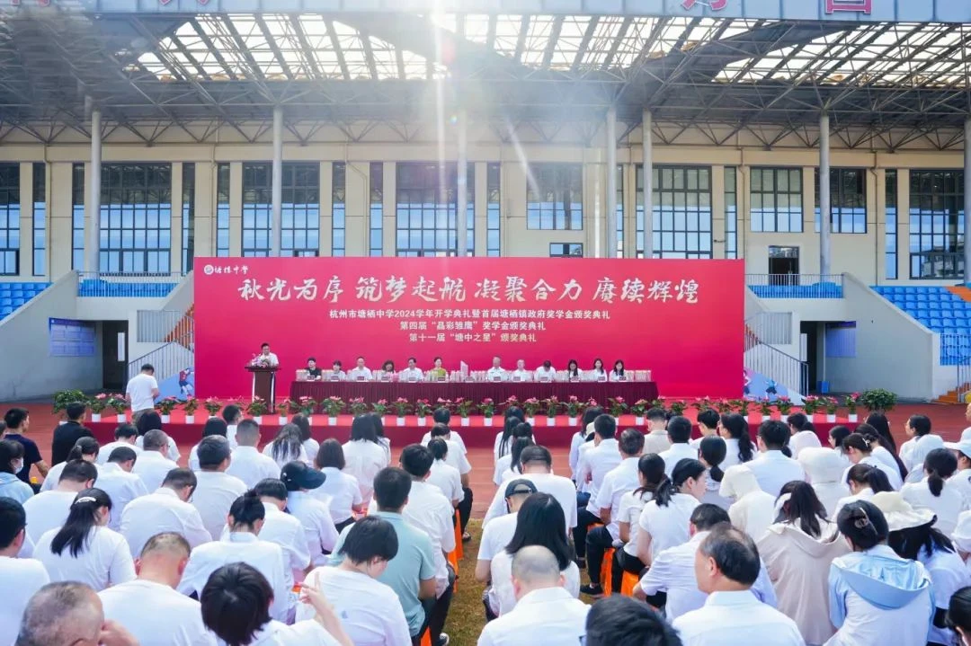 9月9日下午,意昂体育社区慈善基金会理事长孙伟荣先生和理事许素萍女士受邀出席塘栖中学2024学年第一学期开学典礼。塘栖中学副书记、副校长闫永吉,副校长胡春英,副校级视导员吴江林分别宣读了第四届“晶彩雏鹰”奖学金获奖名单、“第十一届塘中之星”表彰名单和“塘栖镇镇政府奖学金”获得者名单。理事长孙伟荣为获奖学生颁奖并合影留念。