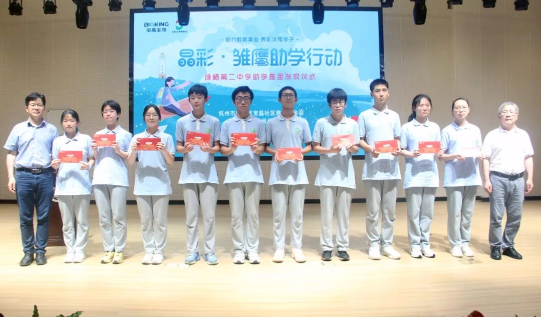 浓情九月,圆梦助学。意昂体育社区慈善基金会像往年一样,再次踏上了助学之旅,为今年的优秀学子们颁发奖(助)学金。杭州意昂体育生物股份有限公司总经理助理、党支部书记、意昂体育社区慈善基金会理事长孙伟荣和杭州意昂体育生物股份有限公司总经办副主任、意昂体育社区慈善基金会理事许素萍受塘栖二中、塘栖三中、塘栖中学的邀请,参加颁奖典礼。